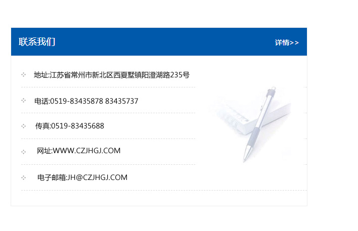 傳真:0519-83435688    郵編:213135    網址:WWW.czjhgj_com.yika-edu.com    電子郵箱:JH@czjhgj_com.yika-edu.com